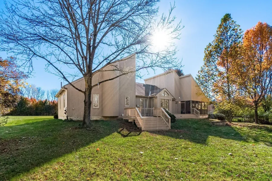 Contemporary home tucked away on scenic wooded lot on the Olentangy river! With 3 bedrooms 2 full and 2 half baths, this ranch on 2.48 acres offers country living minutes from the amenities of downtown. Enjoy tons of light in the open concept floor plan with large living areas. The Master suite has large soaking tub and spiral stairs that lead to a private den/office space. The basement offers plenty of storage plus third bedroom room with half bath, bringing the total livable sq ft to 2036!. Awesome screened in porch to relax and enjoy the magnificent views or to entertain guests. Dock on the river for water access for kayaks or fishing. Don't miss your opportunity to have your own private retreat.