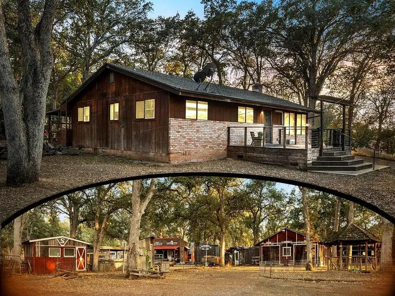 Priced to Sell! This well-constructed cedar package ranch style home has three bedrooms (one potential bedroom that is currently used as an office), two baths with the master bath completely remodeled. The spacious kitchen features an island, pantry, and ample work space. A comfortable sized living room. Step outside to enjoy the covered patios and private back yard entertainment area with the incredible view of an oak-covered hillside. Extra insulation, double pane windows, and air-tight wood stove, this energy-efficient home is easy to heat and cool, with a plentiful supply of oak firewood for low power bills. Private well with new pump in 2023. Country Retreat with Old West buildings, with the potential for events and small weddings. Horse accommodations, shops, hen house, garden area and wishing well. Nestled on approx. 14 acres of oak-covered pastures with hundreds of undeveloped su...