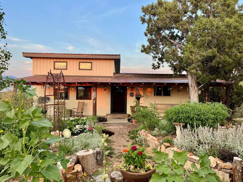 Georgia O'Keeffe-Inspired Sanctuary with a Guest Cottage, and Horse Facilities on 43 Acres in Crawford, Colorado. Tucked into the storied landscape of historic Crawford, this 43-acre sanctuary feels like stepping into a Georgia O'Keeffe painting-where rugged mesas, vibrant skies,and quiet solitude converge. Here, you'll find a rare homestead blending artful beauty, privacy, and possibility, with awe-inspiring views of theWest Elk Mountains, The Raggeds, Grand Mesa, and the North Fork Valley. The newly remodeled 2-bedroom, 1-bath main home is warm andinviting, featuring an open-concept design with airy ceilings, beautiful hand hewn log beam, farmhouse sink, shaker style cabinets, new flooring, new appliances, custom insulated blinds, kitchen island, and a water softener. A wraparound deck and covered porch expand your living space, perfect for savoring fresh mountain mornings or quiet star-filled nights. Heated space 828 square feet. Set well away from the main home is a cozy 1-bedroom, 1-bath guest cottage offers a toasty wood-burning stove, full kitchen, spacious bedroom and custom rustic pine tongue-and-groove interior. This guest cottage does have washer and dryer hookups. It provides both comfort and privacy for guests-or the opportunity to continue its proven success as a short-term rental. Heated space 800 square feet. Outdoor & Equestrian Highlights: Irrigated pasture with gated pipe, two ponds fed by irrigation water, attracting abundant wildlife and creating a serene setting for relaxation and reflection.60' round pen & 100' x 70' arena, plus a hay barn & multiple storage structures. Fenced & cross-fenced for livestock. There is also overflow from the domestic water tap for animals and wildlife year-round. Additional Features:1-car garage with concrete floor, built-in cabinets & power. Mature aspen and fruit trees (peach, apricot, pear), established perennial flower beds & native pinon/juniper forest. Direct access to BLM land for hiking, riding & exploring. Elevate Fiber Optic internet for seamless remote work in both homes. Whether you're sipping coffee as the sunrise paints the mesas, watching wildlife gather at the ponds, or riding out onto endless public lands, this property offers a soulful blend of inspiration, privacy, and self-sufficiency. Whether you're looking to downsize and simplify, or seeking a welcoming home base while you build your dream residence, this magical Crawford retreat is ready to match your vision. This is a true gem.