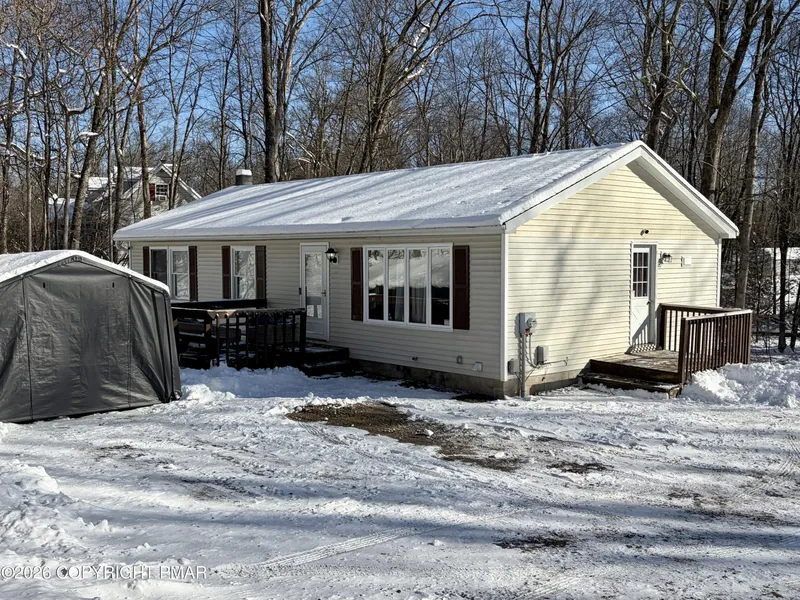 Welcome to this charming ranch-style home set on a private, wooded double lot in Paradise Township. Tucked into a quiet residential area while remaining close to shopping, schools, Mt. Airy Casino, and Mt. Pocono amenities, this property offers both privacy and convenience. The home features 3 bedrooms, 2 bathrooms (including a second bath in the walkout basement), propane forced air heat, and a full walkout lower level with flexible living space. Low taxes and no HOA or dues add to the appeal.