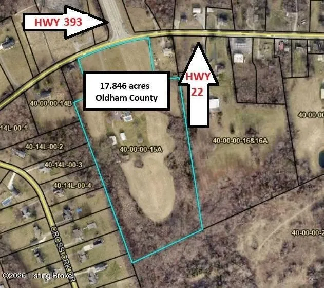 Opportunity knocks! OLDHAM COUNTY DEVELOPMENT OPPORTUNITY 17.85 ACRES. Prime location at intersection of Hwy 22 and Hwy 329. Zoned R-2.