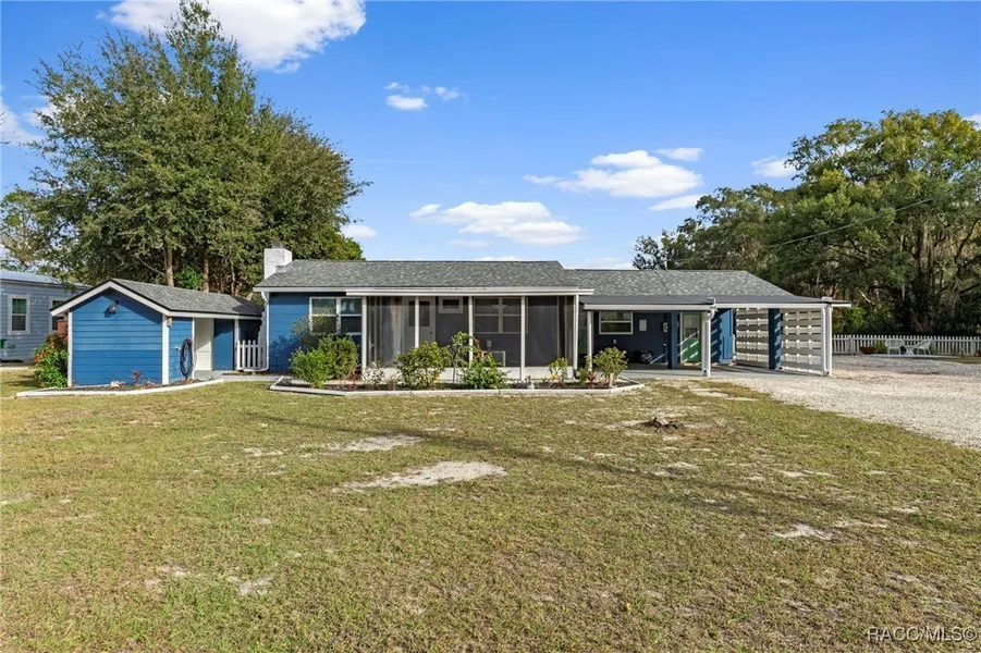 Outdoor and indoor living (which includes 4 lots with DEEDED WATER ACCESS) at its finest is everything you'll experience when you live in this lovely 2 bedroom, 2 bath home that includes an updated kitchen, large laundry room, an office with a wood burning fireplace, a loft for kids to hangout in, a lanai to play card games or have a snack while watching the sunset. (House is fully furnished and can be sold with home.) Huge backyard with a wood deck that is perfect for entertaining and relaxing. Fully fenced backyard gives you plenty of room to play, or your pets to roam free. The views are fabulous for star gazing, bird watching or viewing the morning sunrise. Just over an acre of land the property with a private community boat ramp to Lake Rousseau. NEW ROOF and GUTTERS, new well system, updated AC, upgraded double panel electrical system. Plenty of parking for your RV, with 50 and 30 amp hookups, your boat, and carport parking. Newly painted interior and exterior. Home is perfectly located between Crystal River and Dunnellon which makes it easy to explore all the beauty surrounding the area.