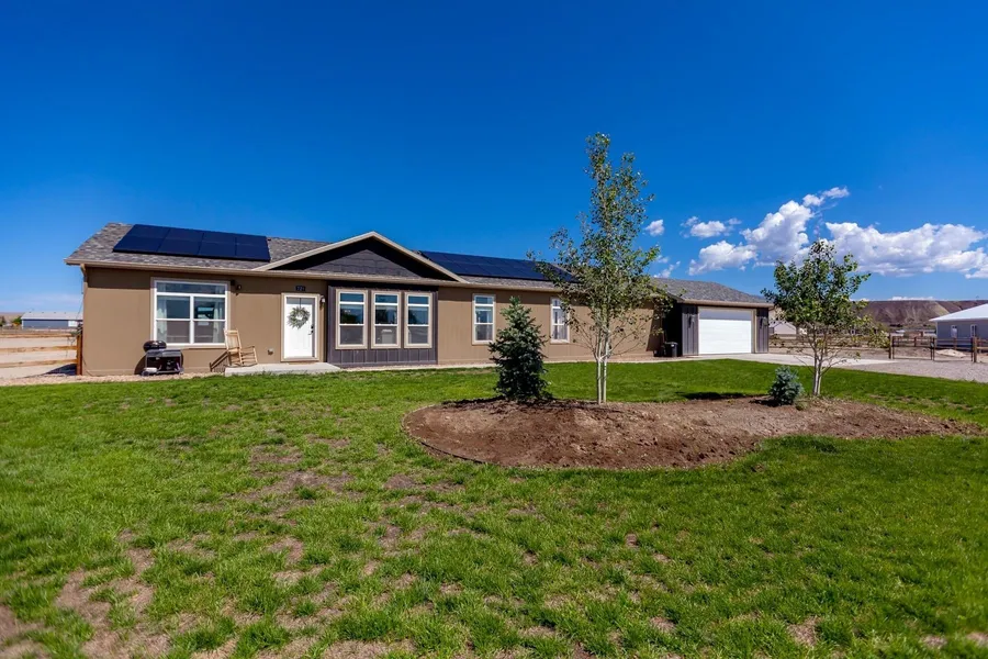 Discover peaceful country living with modern comforts in this beautifully designed 4-bedroom, 2-bath home set on nearly 2 acres in Delta. With open skies above and room to roam, this property offers the ideal blend of space, style, and efficiency. Inside, you'll find soaring ceilings and an abundance of natural light that fills every corner of the home. The open-concept layout flows effortlessly between multiple living spaces-including a cozy family room, a spacious living room, and a truly expansive kitchen that's built for entertaining. The primary suite is a private escape with plenty of space to unwind. You'll love the spa-like bathroom complete with a deep soaking tub, separate walk-in shower, and a massive walk-in closet that provides room for everything. Even better? This home comes with paid-off solar panels, drastically reducing monthly utility costs and adding long-term value.