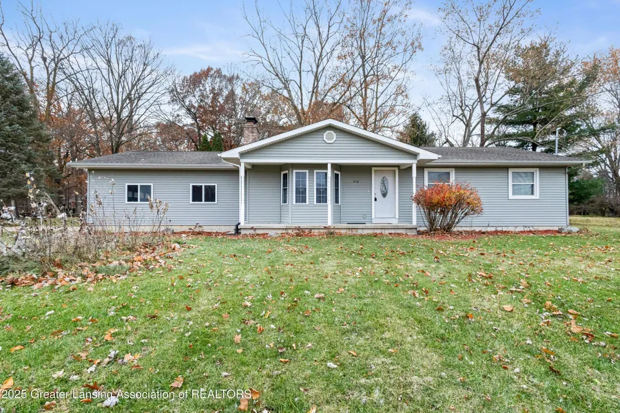 Welcome to 416 Riverview, a beautifully updated ranch home offering lake access at Lake Genevea, nearly a half-acre of elbow room, and a peaceful setting tucked among mature trees. This one checks all the practical boxes and the pretty ones. Step inside to a spacious living room featuring a sunny bay window and a classic brick fireplace that anchors the space with warmth and charm. The floor plan flows into the dining area and the updated kitchen, complete with rich dark-stained cabinets, newer counters, refreshed flooring, and plenty of storage. A large walk-in pantry and a convenient half bath sit just off the kitchen. All three bedrooms are located on the main floor along with a full bath, making everyday living simple and functional. The lower level offers even more flexibility with laundry and a finished private room-ideal for a quiet home office, hobby space, or anything else your life demands. Major improvements have already been handled: a brand-new furnace and A/C within the last year, added attic insulation, and a new well in 2019. The location is a standout-DeWitt Schools, lake access, and a serene natural backdrop without giving up convenience. A smart buy in an unbeatable setting