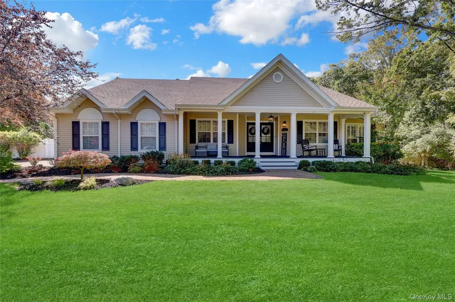 A Stunning Ranch in the desirable Three Village Club. The premier gated community in East Setauket. Beautifully and recently renovated with sophistication and style. The charm of the front porch leads to a welcoming and wide entry foyer. Step inside where the Open concept Great room stuns with its 12 foot ceilings and custom woodwork complete with detailed molding that wraps around the large wood-burning fireplace. Hardwood floors throughout the home. Premium Pella windows with custom shades. The Chef's Kitchen created for your culinary dreams and designed for beauty and performance with Top-of-the-line stainless appliances boasts a Thermador range and Bosch dishwasher, gleaming Quartz countertops, trash compacter, custom cabinetry, and generous sunlit prep spaces. Soaring ceilings in the formal dining room. A Custom designed powder room shows its unique and elegant design! This home off...