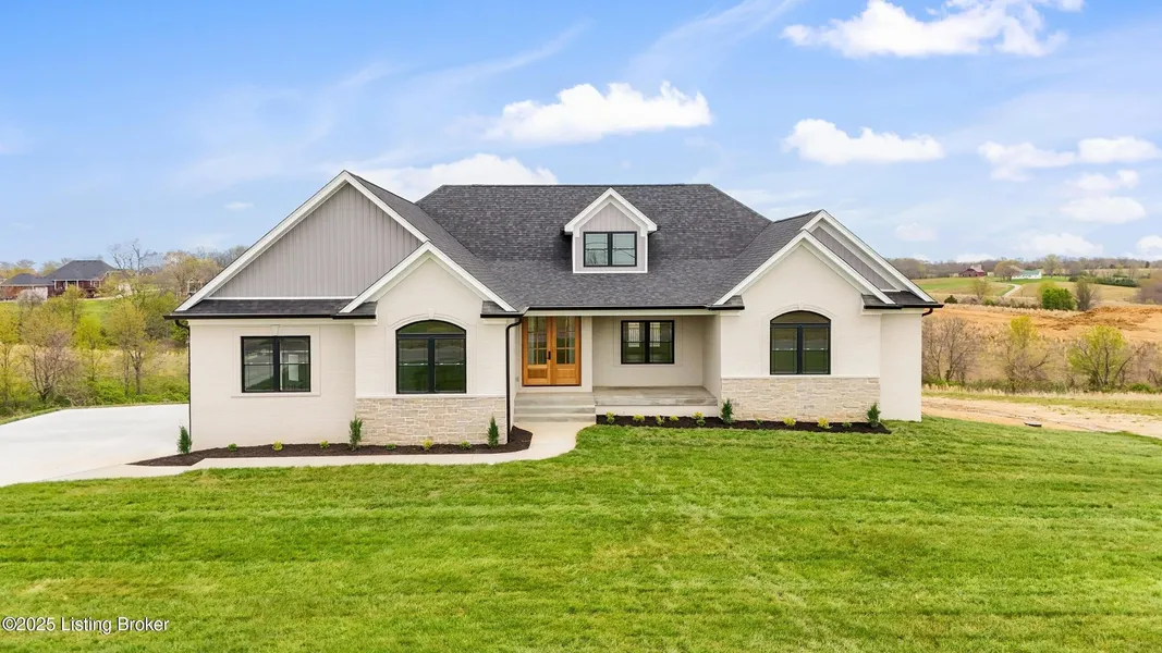 PRICE REFLECTS COST OF FINISHING THE BASEMENT. BASEMENT CAN BE FINISHED WITHIN 45 DAYS UPON CONTRACT ACCEPTANCE. This walk-out ranch with an open floor plan has high-end details throughout. The kitchen features custom cabinets to the ceiling along with a range hood and an 8-foot island. Primary suite features: walk-in shower, free standing tub, and huge walk-in closet. The laundry room connects to the primary closet and includes a mud sink with custom cabinets. Finishes include engineered hardwood floors, vaulted ceilings, custom trim package, crown molding, stained beams, and built-in shelving throughout. 2 car garage on main level and 3rd bay in the basement.