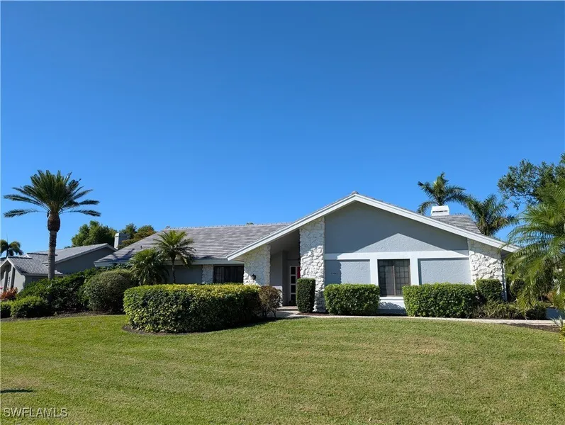 Super nice estate home in Fiddlesticks has the perfect set up for entertaining and has recently been UPDATED with a NEW ROOF in July 2023, updated kitchen and master bath, fresh paint. With almost 3000 square feet under air, this light, bright & open home features a formal living and dining area, large family room with wood burning fireplace and wet bar with light feature.... which is just off the open kitchen with plenty of cabinet and counter space, breakfast bar and breakfast nook. Continue your party outside by the large pool and use of the undercover lanai while taking in the expansive golf course view of the #18 hole of the famed Long Mean golf course. You have plenty of room for guests with two guest rooms having one full and one half bath(which also doubles as the pool bath). The owner's suite is very spacious with a large walk in closet with dressing room, sitting area, dual sinks, soaking tub & walk in shower. Home features a roomy 2 car garage, with extra storage and a second washer and dryer. Home is located on an oversize, interior lot with lots of green space and is just steps to the clubhouse. Brand new pool pump installed June 2025. Don't miss this opportunity to own in one of Ft. Myers finest low-density Country Club communities with 36 holes of championship golf, practice facility, two putting greens, clubhouse with fine dining, lighted Har-Tru tennis courts, heated community pool & spa with cabana offering full food and bar service, staffed fitness center, dog park, pickleball & bocce ball courts, very active social calendar. Fiddlesticks is located close to shopping, restaurants, schools, I-75, airport, ball parks and a short drive to the beautiful white sandy beaches. Mandatory $115,000 membership fee due at closing. No CDD fees. Own your own golf cart. NO WAIT LIST HERE.