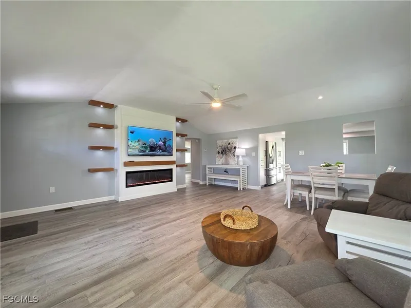 Located in a tranquil, country-style setting in one of South Fort Myers' most discreet and desirable boating communities, this beautifully renovated home offers a rare blend of privacy, modern functionality, and exceptional value. Situated on over half an acre of lush, verdant land, this property presents a serene escape from the bustle of city life-yet is conveniently located just moments from the shopping, restaurants, banks, schools, and the expanding Mullock Creek Marina, soon to become a premier recreational boating park with upgraded amenities, multiple boat ramps, and community access points. This "Boater's Recreational Marina" will become one of the areas newest sought after areas for fun, and will be within walking distance, yet separated by a heavily forested area. Near enough to be convenient, yet enough distance so that you don't even know it is there. This could drastically increase property values for the area. The home itself has been thoughtfully and meticulously remodeled to a high standard, with attention paid to both aesthetic appeal and practical comfort. Inside, you'll find contemporary cabinetry with full-extension pull-outs and rotating shelves, stylish new flooring throughout, freshly painted interiors, and beautifully redesigned bathrooms featuring modern fixtures and elegant finishes. New lighting fixtures provide both warmth and ambiance, while the overall layout promotes easy living and natural flow. This home is truly move-in ready-perfect for those seeking a seamless transition into peaceful, Southwest Florida living. A standout feature of the property is the expansive exterior grounds-an exceptionally rare find at this price point. The oversized lot offers ample space for outdoor living, gardening, entertaining, or simply enjoying the quiet beauty of your surroundings. An impressive detached workshop/barn structure opens the door to a multitude of possibilities-ideal for a home-based business, creative studio, or secure storage for boats, RVs, or other recreational equipment. You will have to come take a look to see the impressive interior of the detached building. Located across the street from a collection of stately, multi-million dollar waterfront estates, this home represents one of the most compelling values in the area. It offers the opportunity to enjoy a secluded and spacious lifestyle with proximity to premier waterways-without the associated price tag of luxury waterfront homes. Store your boat and launch it at the end of the road. A Buyer could even consider this for a cash-flowing rental, and maximize income by renting the property for boat storage. Whether you're a boating enthusiast, small business owner, or simply seeking an upgraded home with room to breathe, this exceptional property offers a rare combination of land, location, and quality renovation that is not often found in South Fort Myers. Come experience the potential for yourself-your private retreat awaits.