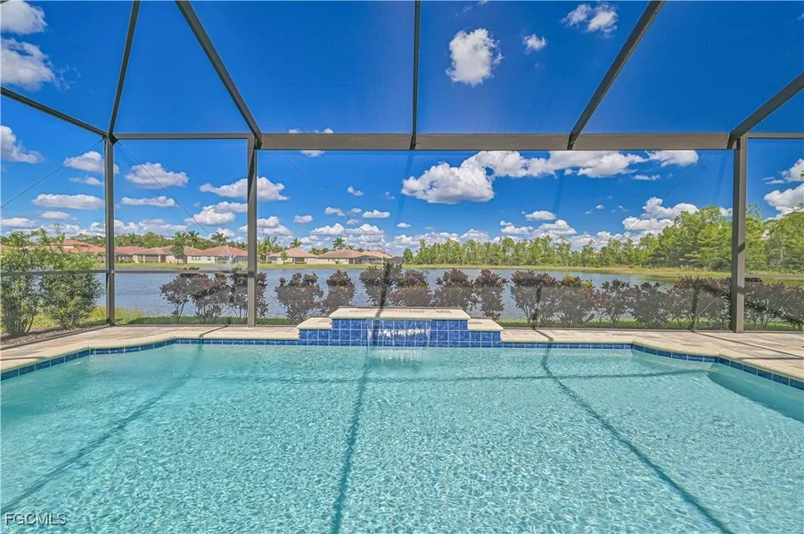 Experience luxury living in this stunning Ashbury floorplan home located in the desirable Lindsford community! This meticulously maintained 4-bedroom + den, 3.5-bath residence offers the perfect blend of comfort, elegance, and functionality. Enjoy your own private oasis with a saltwater heated pool featuring an infinity screen enclosure, perfectly situated on a premium lakefront lot with serene preserve views-ideal for outdoor entertaining or peaceful relaxation. A convenient pool bath is outside in the covered lanai. Built for durability and peace of mind, the home features all impact-resistant windows, roll-down hurricane screens on the lanai, and is not in a flood zone. The widened driveway leads to a two car garage with epoxy flooring and overhead storage, adding both style and practicality. You will love all the upgrades inside like custom closets & pantry throughout, plantation blinds, plank tile flooring in the master suite, and upgraded carpet in the guest bedrooms. The bonus room can be used as a formal dinning, a playroom, or even an office. This open layout has a beautiful kitchen with dark cabinetry, upgraded stainless steel appliances, a double oven, and a whole-house water filtration system with UV light for added wellness. Bonus: a 1-year home warranty included for the buyers. Lindsford is a gated community in central Fort Myers close to RSW airport, sunny SWFL beaches, I75, shopping and restaurants. Resort style amenities include community pool, fitness, basketball, bocce, playground, tennis, fishing pier, and a community room with lots of social activities. Very low HOA fees include lawn care and lawn irrigation. Don't miss this opportunity to own a move-in ready, highly upgraded home in a gated community with low HOA fees and great amenities. Schedule your tour today!