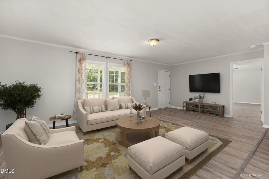 Welcome home to Franklinton, NC. This spacious modular home has 3 bedrooms, 2 bathrooms, over 1,900 sqft, over 1 acre lot and a 4th flex space that can be used for an office or rec room. The first feature you'll notice when walking inside is being greeted by a bright and airy open floor plan that connects the living, dining, and kitchen areas. The spacious living room features large windows that fill the space with natural light. Also note that all of the carpet has been removed, fresh paint has been added and the refrigerators, washing machine and sheds will stay. You will love the one level living, walk-in closets and double vanity sink in the en suite bathroom in the primary bedroom. With ample outdoor space, and heading into Fall, spend time relaxing on the front porch or entertaining on the back deck. You have the best of both worlds - being tucked away for privacy, but only a short...