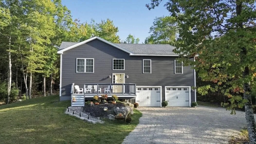 Built in 2017, across the street from Pushaw Lake, this beautiful 3-bedroom, 2.5-bath raised ranch offers just over 2,000 sq. ft. of bright and modern living space. This open floor plan is enhanced by tall vaulted ceilings, creating a spacious and welcoming feel throughout. The kitchen features a large custom-designed island with a granite surface and opens to the dining area with sliders to an 8' x 10' back deck. A large primary suite includes a walk-in closet and a tiled tub/shower surround. The lower level provides a family room and a half bath with laundry. Radiant heat runs throughout, with modern vinyl plank flooring and tile in the bathrooms. The bathrooms are furnished with stylish custom vanities that complement the space. Freshly stained decks, a new gravel driveway, and neutral tones complete the home's move-in-ready appeal. An attached 23' x 27' garage offers generous...
