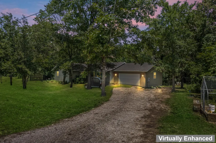 Welcome to your dream home in the charming Table Rock Lake community of Golden, Missouri! This sprawling 3-bedroom, 2-bath ranch-style home sits on a beautifully maintained 1-acre corner lot, offering both space and privacy. With a large, level yard and half the property covered in mature woods, there's even room to build your dream shop--thanks to easy direct access from the street. Step inside and be greeted by a spacious open-concept layout where the kitchen, dining, and living areas blend seamlessly together. The kitchen boasts warm oak cabinetry, a beautiful center island, and a propane gas stove/oven--perfect for those who love to cook. The adjacent dining room features a patio door that leads to a private covered back deck, ideal for morning coffee or evening relaxation while enjoying peaceful wooded views. The living room is filled with natural light from its large bay windows and features a cozy wall-mounted propane heater, providing extra warmth and peace of mind during winter months. Down the bright white hallway, you'll find a well-placed laundry closet and three of the largest bedrooms you'll find in any home. The master suite includes a generous walk-in closet and an ensuite bath with a walk-in shower. This home offers plenty of outdoor extras including a charming greenhouse for gardening enthusiasts, a spacious covered front porch perfect for relaxing, and a walkable crawl space that adds convenience and utility. The attached two-car garage adds to the functionality, offering plenty of storage and workspace. Located just off Highway 86, this home combines country charm with easy access to the amenities of Golden and Table Rock Lake. Whether you're looking for a permanent residence or a weekend getaway, this property checks all the boxes. Come see the space, comfort, and tranquility this special home has to offer!