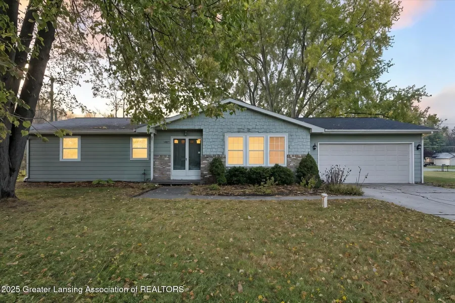 This 4-bedroom, 2.5-bath ranch offers the space and practicality every family needs. Features include hardwood floors, first floor laundry, two spacious living areas, a primary suite with a half bath, and a cozy wood-burning fireplace surrounded by timeless brick. Situated on a large corner lot with a storage shed, fire pit and woodland views, there's plenty of room to relax or play. Excellent location near 2 parks that include running trails and canoe launches along the Looking Glass River. Just over a mile from the Wacousta General Store, Wacousta Elementary and Watertown Township Hall. New roof and gutters were installed by Weather Vane Roofing in 2022, and a recently maintained and fully functional B-Dry drainage system in the basement guarantees a dry usable space.