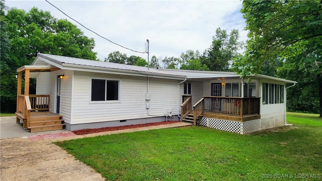 Experience country living at the Lake of the Ozarks in this updated ranch featuring 2 bedrooms. Situated in the sought-after P Road area, this beautiful home and land is a real Ozark gem! Just a mere 10 minutes from Laurie, this updated home boasts a spacious living room adorned with a cozy wood-burning fireplace! Enjoy the year-round sunroom and the delightful, covered porch! Recent upgrades include a new roof, HVAC system, and flooring. This home is move-in ready! Additionally, there is a detached 2-car garage, complete with ample space for a workshop. Furthermore, an RV hookup adds to the convenience. The property is bordered by roads on two sides, offering excellent potential for expansion. Spanning a level 1.5 acres, this is an ideal retreat for those wishing to relish the beauty of the Lake of the Ozarks. The house has an easement that allows access to a community boat ramp, ideal ...