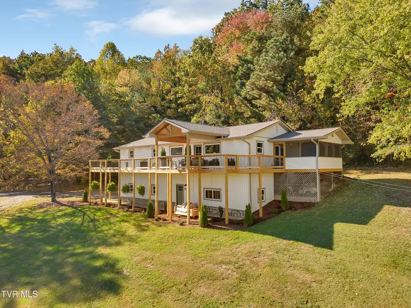 Agent is the owner... Completely remodeled home on 4 acres just outside the city limits with incredible mountain views. Though in a neighborhood, the property offers total privacy. The main level features 3 bedrooms, 2 bathrooms, and an open layout, while the finished downstairs offers its own kitchen, 3rd bath, and space for a 4th bedroom or mother-in-law suite-with separate entrances and 2 bay garages attached to the home. A giant wraparound deck and screened-in room make it perfect for gatherings. The driveway leads directly to the main level kitchen door for easy access. Plus, a 2,000 sq. ft. detached garage with power gives endless options for work, storage, or hobbies. Some of the recent updates are -Roof -Deck -Siding -HVAC -Garage Doors -Flooring -Sheetrock -All Cabinets & Vanities -Electrical & Plumbing -Light Fixtures -Added 2nd Kitchen in the basement Agent is Owner