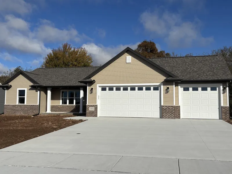 Awesome WILLOW model built by the industry leader, VANS CONSTRUCTION on a fabulous wooded lot in terrific Greenville location! Sharp 3 BR home with gorgeous curb appeal, showcasing brick & vinyl exterior! Spectacular kitchen has canyon-stained cabinetry, quartz counters & tile backsplash. Primary BR has a private bath and walk-in closet. 3-car garage with floor drain. Central air, along with "soft close" doors and drawers, complete the picture!