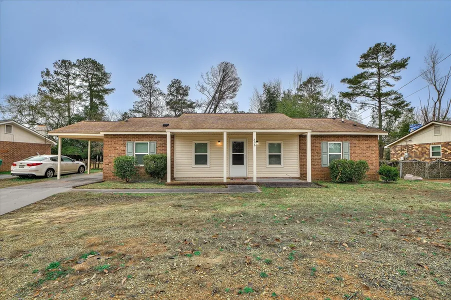Welcome to this charming 3-bedroom, 2-bathroom brick ranch home, thoughtfully maintained and move-in ready! Step inside to discover beautiful wood flooring flowing throughout the spacious living areas. The cozy living room features a stunning stone fireplace, perfect for relaxing evenings. Enjoy meals in the large dining room conveniently located just off the kitchen. The owner's suite offers a private, dedicated bathroom, while the two additional bedrooms share a full hall bath. Additional highlights include a functional laundry room, a welcoming front porch, and a back patio ideal for outdoor gatherings. The very large, fully fenced backyard provides plenty of space for play and privacy. Situated just minutes from Fort Gordon, this meticulously cared-for home offers both comfort and convenience in a wonderful setting. Don't miss your chance to make it yours!
