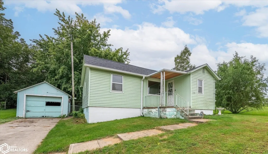 Renovate this 2-bedroom home with a detached 1-car garage on a large corner lot near churches and downtown Harlan. Features a spacious living room, eat-in kitchen, and 2 bedrooms. The basement offers a bath, laundry area, and storage. New shingles on home and garage! Offered in "AS IS" Condition. Great opportunity to transform this home. Motivated seller.