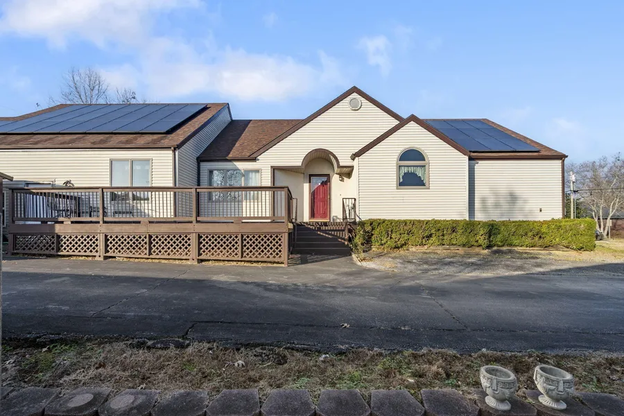 Flexible Living Near Lake Taneycomo -- Space, Comfort, and Savings!Located in a great neighborhood close to Lake Taneycomo and the city park, this well-maintained single-story home offers easy living with limited stairs and an impressive amount of space and versatility. Inside, you'll find a spacious kitchen featuring hard-surface tile flooring, a center island, serve-over counter, pantry cabinet, and a sink window with a beautiful view of Lake Taneycomo. A newer refrigerator is included, along with a washer and dryer, making this home truly move-in ready. The primary bedroom is very large and includes multiple closets for excellent storage. The primary bathroom offers double sinks and a luxury sit-down or stand-up shower and bath, creating a comfortable, spa-like retreat. The 4th bedroom can function as a private apartment with its own exterior entrance, ideal for guests, extended family, or rental potential. An enclosed room currently set up with hair salon equipment can easily be repurposed as a home office, fitness room, or creative space. Outside, enjoy a fully fenced backyard, a large side patio with room for the whole family, and a 10x12 storage building for extra space. Solar panels help all but eliminate the electric bill, providing outstanding long-term savings. Garage & Parking Features:The property includes a 2-car detached garage, RV parking, and a long paved driveway with space for up to five vehicles, offering rare and convenient parking options for guests, toys, or trailers. This home truly delivers on location, flexibility, and efficiency. Schedule your showing today and explore all the possibilities!