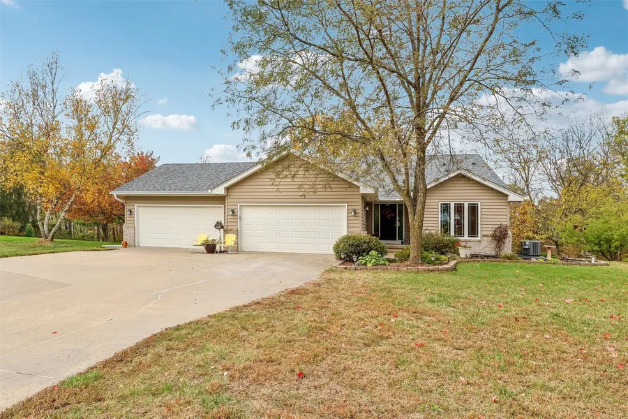 Hard-to-find 4 BR ranch on 4.67 acres in Pine Ridge Estates! Lots of room to build an ADU / or large detached outbuilding or something else. This spacious home offers over 1,600 SF on the main level plus a finished lower level and a 4-car attached garage with a 25' deep stall perfect for a boat or toys. The newly remodeled kitchen features abundant storage, a large island, and generous eat-in space. The semi-private layout offers freedom from an open-concept mess-ideal for entertaining. Hardwood floors flow through the main level, which also includes a flexible front room with French doors (office or 4th BR), formal dining room (2nd office option), and a half bath. The primary suite features a jacuzzi tub, shower, double vanity, walk-in closet, and new full back deck overlooking peaceful timber. The finished lower level includes 2 BRs, a 3/4 bath, 2 storage rooms, a huge rec room, and a wet bar. Updates include - see attached list with seller disclosure. Enjoy the shared stocked pond, paved roads, and easy commute to Des Moines. Indianola Schools. There is a concrete pad NW of the home for a shed to be built on if wanted.