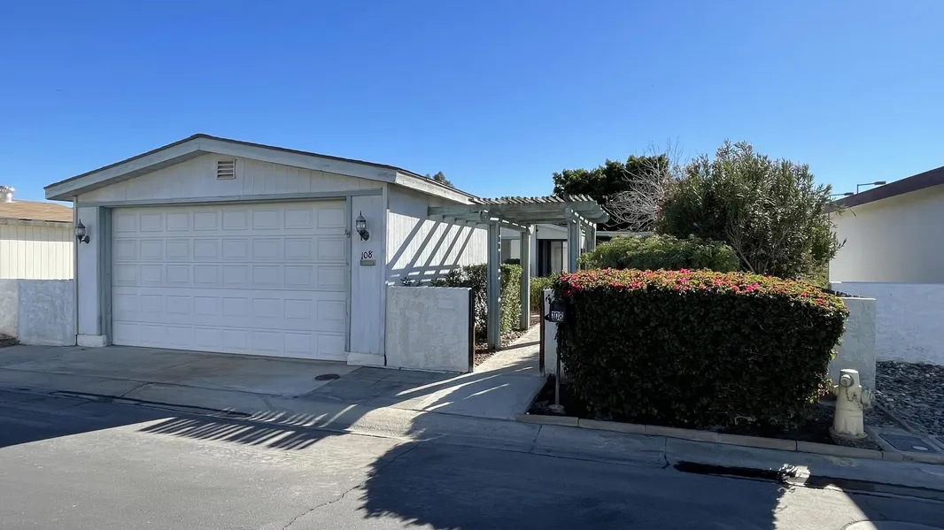Welcome to this Spacious manufactured home in the Desert Groves community of Indio. The property features an open living and dining area with high ceilings, lots of natural light, and newer luxury vinyl flooring throughout. The large kitchen offers plenty of cabinetry, a new stainless-steel cooktop, and a peninsula with bar seating. A sliding glass door opens to a private patio with hardscape and perimeter fencing. there are two good size bedrooms, the primary suite with en-suite full bathroom with a separate shower and tub combinations. This property is on permanent foundation 443a recorded. Secondary bedroom feature sliding-door closets and lots of natural light. Interior improvements include fresh paint, updated finishes, and newer central air conditioning. The property includes a detached two-car garage and is located within an HOA community offering pool, spa, tennis courts, greenbelt paths, RV access and common landscaped areas. Convenient access to nearby parks, shopping, dining, and major roadways.