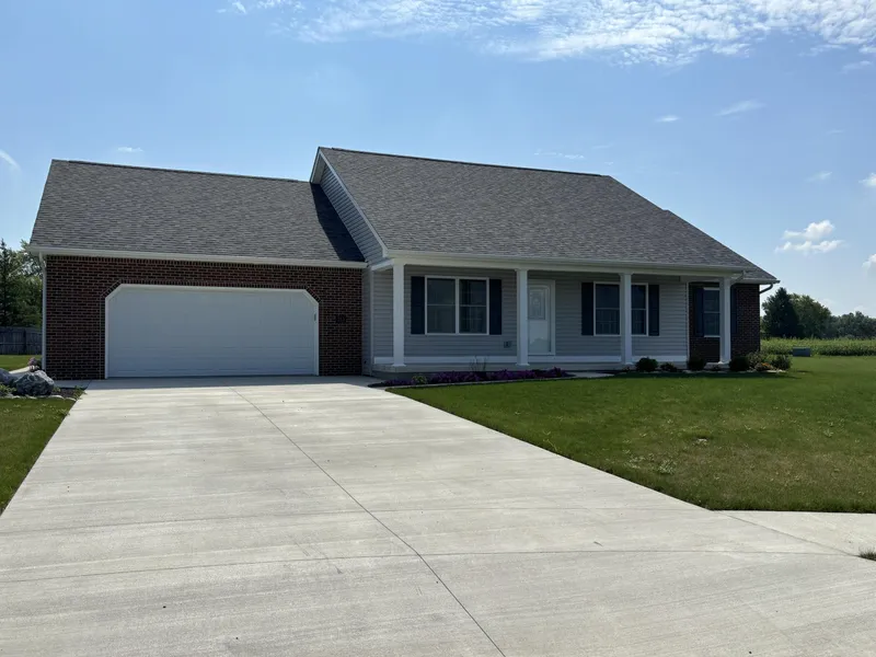 This beautiful brick and vinyl ranch home was built in 2023 and has immediate possession. The home is situated on a cul-de-sac and the lot is absolutely amazing. The floor plan is very open; with living room, kitchen and dining areas. There are three bedrooms and two full baths with a separate utility area. Don't miss the attached, two car garage, rear patio area and fabulous front porch!!! The home is situated very close to the village park with built in pool, pickleball and playground area. TAX ABATEMENT THRU 2028.