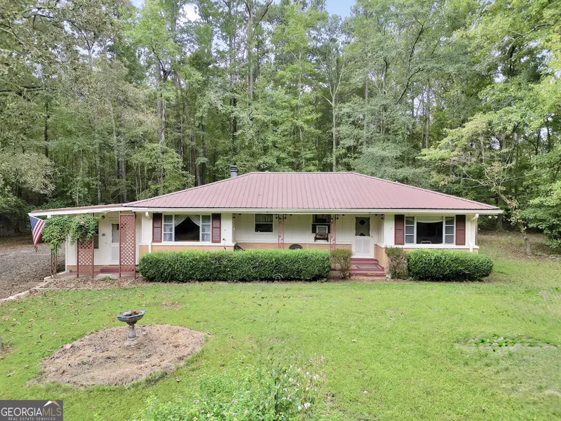 Welcome to 196 Jackson Lake Inn Rd - where privacy, space, and potential come together in one of Jackson's most sought-after locations. Nestled on two combined lots totaling 10 acres, this 3-bedroom, 1.5-bath home offers peace and seclusion without sacrificing convenience. Inside, you'll find an open kitchen layout, hardwood and carpet flooring, and a cozy wood-burning stove perfect for chilly Georgia evenings. The home has great bones and is ready for your personal touch and updates. Circular driveway and a covered carport for convenience. Step outside and discover a gardener's paradise with countless perennials, two greenhouses, and two wells dedicated to landscape watering. A dry pond that historically holds water adds both charm and potential with a covered swing, while the small pole barn and two storage sheds (one fully outfitted as a woodworking shop) provide space for hobbies, storage, or small-scale farming. Stay connected with high-speed Conexon internet and enjoy the peaceful rural setting with the convenience of nearby amenities. If you value privacy, outdoor living, and room to grow - don't miss this rare opportunity in the heart of Jackson's Stark community.