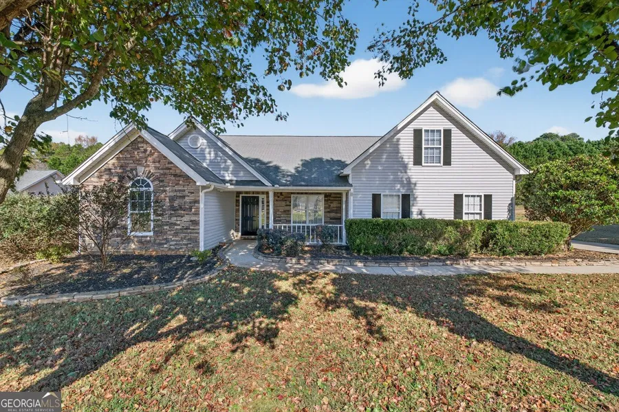 This charming 4 bedroom / 2 bathroom home is located in the Dillons Walk neighborhood just off Hwy 124 in Jefferson. It sits on a mostly level .99+/- acre lot and has a fenced backyard with newer privacy fencing. Walking up to the home, you will love the shaded rocking chair front porch. Inside, this home features a split floorplan with 3 bedrooms on the main floor and the 4th bedroom upstairs. The primary bedroom is located on the opposite side of the home from the secondary bedrooms. The primary bedroom has a large trey ceiling and a large walk-in closet. The primary bathroom is open, spacious, and offers TONS of counter space, plus a large soaker tub and separate shower. In the kitchen, you have stainless appliances, granite countertops accented by a subway tile backsplash, and a breakfast bar overlooking the living room which includes a wood burning fireplace. Interior has been recen...