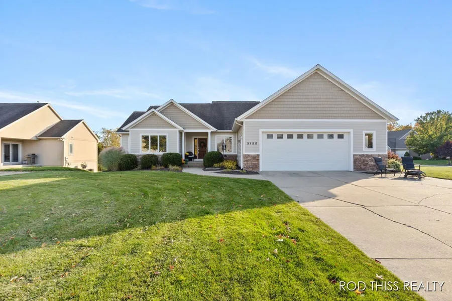 Hudsonville/Jenison Real Estate - Welcome Home! Beautiful custom built one owner home in sought after Hager Park West! Featuring a main level with cathedral ceiling over living room (gas fireplace) which opens to the dining area (sliding glass door to rear patio/yard) and fantastic kitchen (dishwasher; refrigerator; stove remain). The primary bedroom suite features glass doors to custom concrete patio along with a connected private bathroom with custom tile shower and large walk-in + linen closet. Bedrooms 2 & 3 plus second full bathroom, and laundry finish the main level. Daylight level with bedrooms 4 & 5, a third full bathroom, and huge family room with space for media center, gaming area and a bar/kitchenette. Dual zone HVAC. UG Sprinkling. Hudsonville Schools or check out Jenison's school of choice possibly. Hager Park West is a sought after neighborhood in a wonderful area close to schools and parks, shopping and dining and entertainment options. See this one soon!