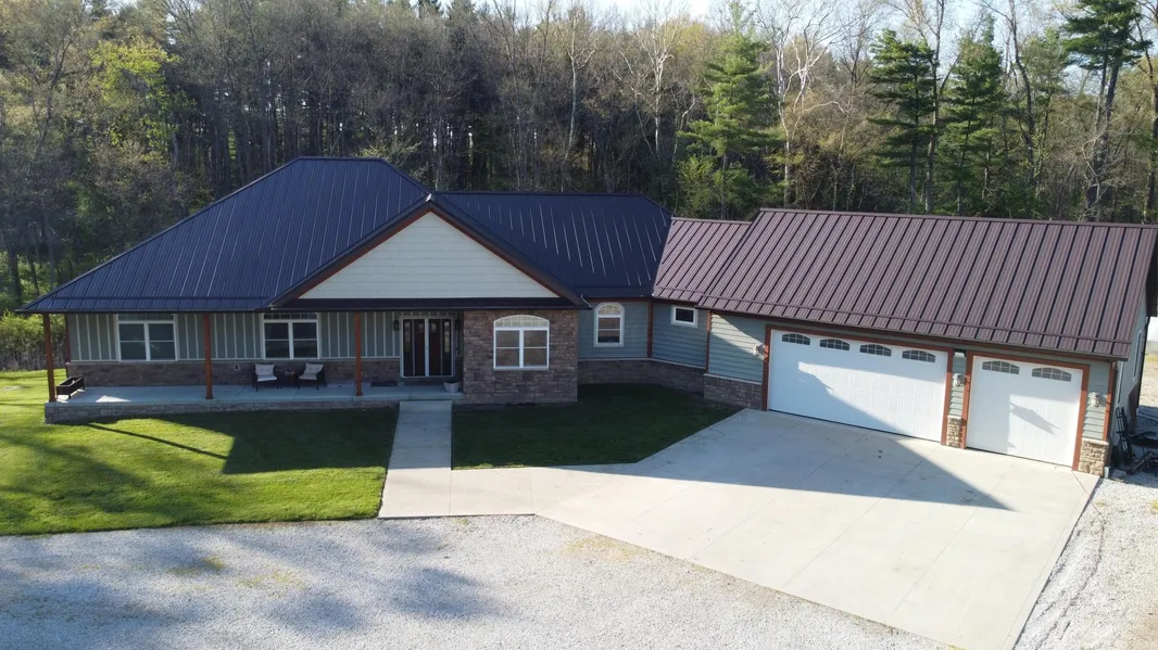 Beautiful multi-generational home, on a private 7.14 acres abundant trees and rolling stream to overlook from the 736 sq ft deck with gas grill hookup. The full walkout basement offers a full mother-in-law suite with full kitchen, living room, bedroom/full bath, 1/2 bath, laundry, and full turf rec room. Walkout basement to a custom stamped concrete patio with built-in firepit equipt with gas starter. The loft above the three-car attached garage is the complete with the third living space of a kitchenette, full bath, and bedroom/living room area. The main home offers four bedrooms, 2.1 baths with abundant light and breathtaking views of the treed rear yard. Whole house generator, Agent owned