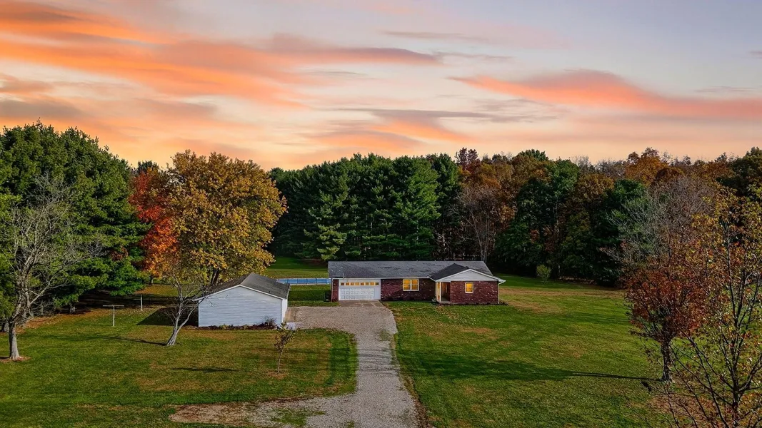 Welcome to 14730 State Route 56 Kingston. This home boast many updates in a beautiful setting on over 5 acres. New soft close kitchen cabinets and drawers. New counter tops. Updated bathroom. Fresh new flooring and doors throughout. New windows. Bring all your toys and equipment as this home offers an attached 2 car garage along with a detached 3 car. The four season room overlooks the in ground swimming pool with a new liner that was installed last year. Mature trees in the front yard and big mature pines in the back make for a beautiful setting looking towards the hocking hills that is just a short drive away to all the caves and adventures. Come take a look for yourself! Professional photos coming soon.