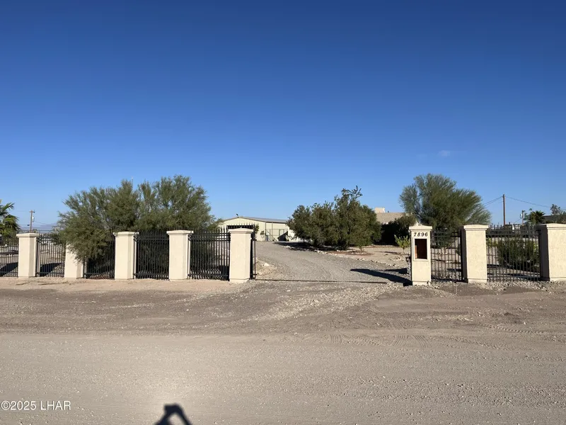 Enter this stunning property through elegant wrought iron and stucco gated fencing that line the front of this 2+ acre FLAT parcel. This charming 3-bed, 2-bath home offers 1,560 sq ft of comfortable living space. Enjoy a spacious 2-car attached garage, 30x60 9-car detached garage/shop perfect for projects, 2 RV carports and 2 additional carports for ample vehicle storage, and 3 high-cube shipping containers for versatile storage solutions. Relax in the backyard under a 28x35 covered & screened in patio, complete with a built-in kitchen area and a propane fire pit/heater for cozy evenings perfect for entertaining. A large planter adds to the outdoor charm. Between the house and detached garage/shop, you'll find a 14x60 dog run, ideal for your furry friends. The garage/shop boasts a sturdy Red Iron Frame, concrete flooring, and butcher block benches, providing plenty of space for your curr...