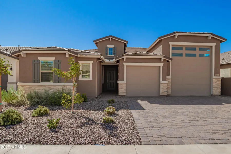 Experience the pinnacle of modern desert living in this brand new Deacon plan, where luxury and functionality meet in perfect harmony. Designed with both elegance and convenience in mind, this home features an impressive climate-controlled RV garage with air conditioning, plus two tandem bays-ideal for adventurers, collectors, or anyone seeking versatile, comfortable storage. Step inside to an expansive open layout that exudes sophistication. The gourmet kitchen is a chef's dream, showcasing a walk-in pantry, crisp white cabinetry, sleek quartz countertops, designer tile backsplash, and premium stainless steel appliances. A large center island invites gatherings, while the space flows seamlessly into the great room and dining area, highlighted by oversized patio doors that extend your living space outdoors. The elegant primary suite is a private retreat, offering spa-inspired details such as dual sinks, tiled walk-in shower, and spacious walk-in closet. Thoughtful touches continue throughout, with a versatile flex room, mudroom, central laundry, and abundant storage options all designed to make everyday living effortless. Outdoors, enjoy an extended covered patio overlooking low-maintenance turf and desert landscaping, where mountain views provide a serene backdrop for relaxation or entertaining. With easy freeway access, this home combines modern luxury, convenience, and stunning natural surroundings, making it the ultimate retreat to call your own.