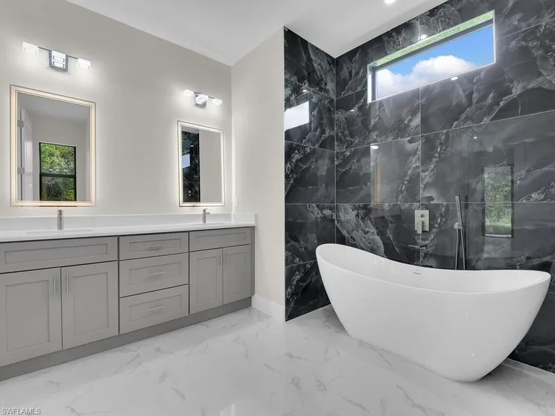 Brand-New Construction - Be the First to Call It Home! Experience modern luxury in this beautifully crafted 4-bedroom, 2-bath new construction home, ideally situated on an oversized lot in one of Lehigh Acres' most sought-after neighborhoods. Designed with both style and quality in mind, this bright and airy home showcases an open-concept layout and upscale finishes throughout. The gourmet kitchen is a true centerpiece, featuring sleek stainless steel appliances, crisp white cabinetry with brushed nickel hardware, recessed LED lighting, and striking spiral pendant lights. Quartz Calacatta Plata countertops extend throughout the kitchen, bathrooms, backsplash, and even the window sills, adding cohesive sophistication at every turn. Retreat to the elegant primary suite, complete with a spacious walk-in shower, relaxing soaking tub, and generous room to unwind. A flexible fourth bedroom makes an ideal office, guest room, or creative space. Built for peace of mind, this home includes impact-resistant windows and doors, a full irrigation system, and a dedicated laundry room with a utility sink. Located just minutes from shopping, dining, and major roadways-this is Lehigh living at its best. Don't miss your opportunity to own this move-in ready gem!
