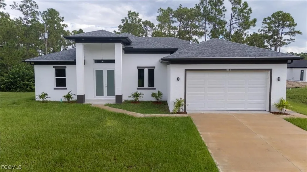 Welcome to Your Dream Home in Lehigh Acres! Step into contemporary elegance with this newly constructed 4-bedroom, 3-bathroom home, offering approximately 2,060 sq. ft. of beautifully designed living space. Located in the heart of Lehigh Acres, FL, this single-story gem combines modern luxury with spacious comfort-perfect for families or those seeking a serene retreat. This home features a sleek exterior with crisp white siding, bold black trim, and a contrasting gray roof. A clean driveway leads to a two-car garage, while a striking double-door entry sets the tone for what's inside. Inside, enjoy a bright and airy open layout enhanced by tray ceilings, recessed LED lighting, and luxurious marble-look tile flooring throughout. The gourmet kitchen boasts quartz countertops, glossy white cabinetry, a large island, and stainless-steel fixtures-perfect for both everyday living and entertaini...