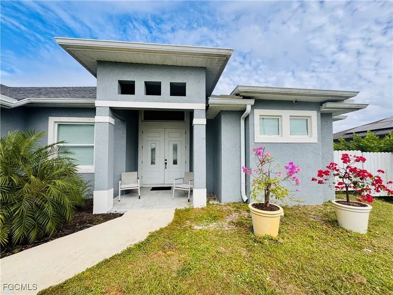 Check Out This Beautiful 2022 Modern Home with In-Law Suite Potential, Fruit Trees, and Closing Cost Assistance! Welcome to this stunning 4-bedroom, 3-bathroom home offering 2,362 sq. ft. of total living area and a flexible layout perfect for multi-generational living. Built in 2022, this property showcases modern finishes, elegant design, and thoughtful upgrades throughout. Step inside to enjoy high ceilings, sleek tile floors, and a spacious open-concept layout filled with natural light. The luxurious master suite features a spa-inspired bathroom with a freestanding soaking tub, dual vanities, and double walk-in showers - and can easily be converted into a private in-law suite with its own access. The garage is partially converted into another in-law suite, ideal for extended family, guests, or rental income potential. Outdoors, relax and unwind in your private fenced yard, surrounded by multiple fruit trees and tropical landscaping - the perfect Florida retreat. Located in a quiet and desirable area of Lehigh Acres, this home offers the perfect blend of comfort, privacy, and convenience, close to shopping, schools, and major roads. ?? Seller is contributing toward buyer's closing costs! Key Features: 4 Bedrooms / 3 Bathrooms 2,362 Sq. Ft. Total Living Area Built in 2022 Garage Partially Converted to In-Law Suite Master Suite Convertible to Second In-Law Suite Modern Kitchen & Bathrooms Multiple Fruit Trees Fully Fenced Yard Excellent Curb Appeal Seller Closing Cost Assistance