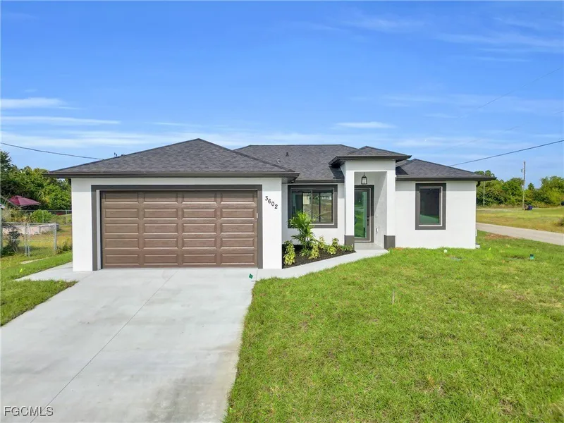 Beautiful New Construction Home in the best area in Lehigh Acres!!! Three bed, two bath, two car garage. calacatta quartz counters tops in kitchen and baths, impact doors and windows with Energy System Low-E keeping your home comfortable year-round while saving energy costs. Stainless-steel appliances, imported porcelain tile throughout, sprinkler system, corner lot. Easy access to Fort Myers, I 75, 10 minutes to RSW International Airport, close to school, shops, restaurant etc... Come to check this out and make your offer today!!!