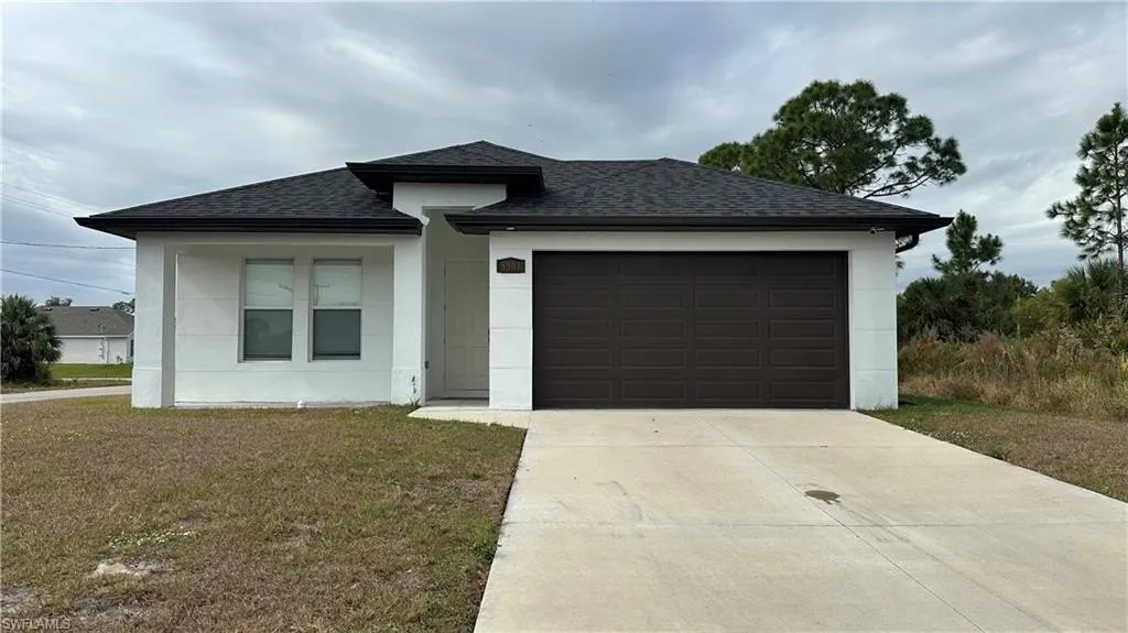 Beautiful 2023 home featuring 3 bedrooms, 2 bathrooms, and a 2-car garage. This property offers a bright open floor plan with tile flooring throughout, impact-resistant windows and doors, and a spacious kitchen with wood cabinets and stainless-steel appliances. Enjoy the large covered lanai and private backyard-perfect for relaxing or entertaining. Conveniently located near schools, shopping, and main roads in a peaceful area of Lehigh Acres.