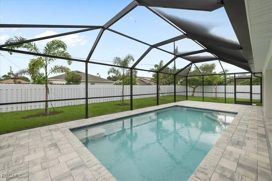 **City Utilities with All Assessments Paid** Expansive New Construction with Dual Primary Suites, Heated Pool, Private Fenced in Yard & Modern Finishes-Paradise Cove II, 1217 SW 20th St, Cape Coral, FL 33993 Step into the ultimate blend of comfort, style, and Florida living at Paradise Cove II-an exceptional new construction home offering over 2,100 square feet of thoughtfully designed space, two luxurious primary suites, and a resort-inspired heated pool. This single-story, 4-bedroom, 3-bath residence features an open-concept great room with soaring ceilings, a gourmet kitchen with quartz countertops and an oversized walk-in pantry, and a 3-car garage for all your storage needs. Enjoy the flexibility of dual primary suites-perfect for multi-generational living or hosting guests in style. The main suite is a private oasis with direct lanai access, a spa-inspired bath, and a walk-in closet. The second suite offers its own full bath and pool access, ensuring comfort and privacy for all. Entertain effortlessly in your chef's kitchen, relax in the sunlit great room, or step outside to the 1,100 sq ft screened lanai and heated pool-your private retreat for year-round enjoyment. Impact windows, advanced insulation, and smart home readiness deliver energy efficiency, security, and peace of mind. Located outside the flood zone, this home offers significant insurance savings and long-term value. Paradise Cove II is nestled in a quiet Cape Coral neighborhood, minutes from top-rated schools, shopping, dining, marinas, and world-class beaches. With no HOA and a 1-year builder and 10-year structural warranty, you'll enjoy freedom, flexibility, and confidence in your investment. Opportunities like this are rare-schedule your private tour today and experience the best of new construction living in Cape Coral. One or more photo(s) was virtually staged. This is The Paradise Cove II Plan.