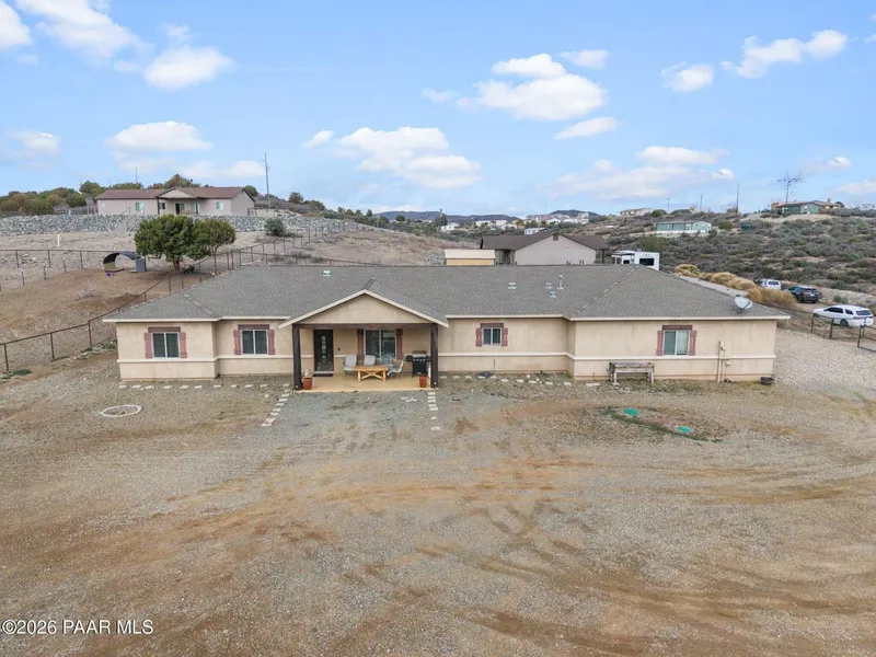 Custom home on 1 flat acre with elevated night sky views! Usable lot boasts a conservative 80 x 20 potential envelope to build your dream garage, workshop with casita, or RV storage. 2 share well. Perfect for quick access to Phoenix and Prescott! 12 minutes to the I17!