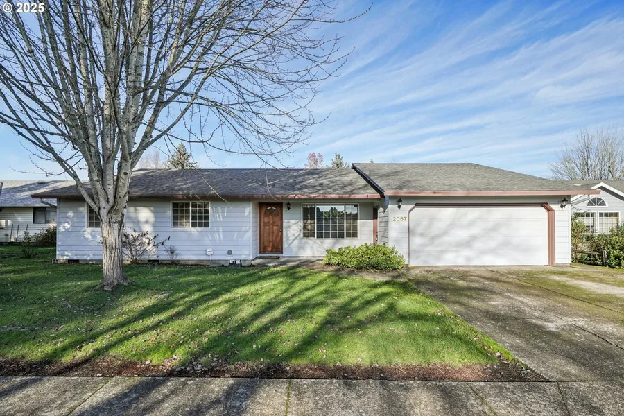 This charming ranch home in a quiet neighborhood blends vintage character with a spacious, easy-living layout. Inside, you'll find two comfortable living spaces that offer versatility for relaxing, work, or entertaining. The kitchen features a bright window box, adding warmth and natural light to the heart of the home. The primary bedroom features an en suite bathroom and offers direct access to the deck. Step outside to a big backyard with its spacious deck, perfect for outdoor dining or unwinding while overlooking the green space directly behind the property. With no immediate rear neighbors, the setting feels private, open and peaceful. A 2-car garage and single-level floor plan add everyday convenience. Located minutes to downtown McMinnville with its cute shops and local amenities, this home offers charm, flexibility, and a welcoming setting ready for its next chapter. See it today!