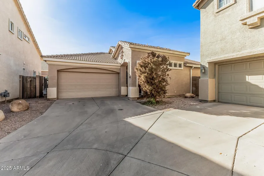 PAID OFF SOLAR!!! You'll LOVE this charming home with POOL in the gated Augusta Ranch! Sits on a cul-de-sac, it offers 3 beds, 2 baths, & a 2-car garage. The inviting interior features vaulted ceilings, tons of natural light, a neutral palette, and tile & wood-look flooring in all the right places. Designed for everyday living & entertaining, the seamlessly flowing open layout is sure to impress! The kitchen boasts built-in appliances, quartz counters, ample wood cabinets, track lighting, and a 2-tier island w/breakfast bar. The main bedroom has sliding doors to the back and an ensuite with dual sinks. Check out the private backyard, where you can relax or have a fun gathering! Move-in ready