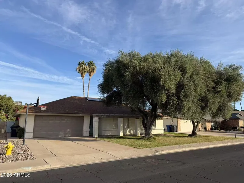 Charming 3-bedroom, 2-bath rental with 2-car garage, basketball hoop, and manicured front yard. Interior features wood flooring, arched doorways, neutral palette, and plantation shutters. Bright living areas offer an open, functional layout. Kitchen includes granite countertops, ample wood cabinetry, pantry, and peninsula with breakfast bar open to main living space. Primary suite features double-door entry, carpet, private bath, and walk-in closet. Arizona room with pass-through bar ideal for entertaining. Backyard offers green grass, sparkling pool, and space to relax. Convenient Mesa location near shopping, dining, schools, and freeway access. Security Deposit: $2,500. Non-refundable Cleaning Fee: $300. Earnest Money: $1,000. No Monthly Admin Fee.