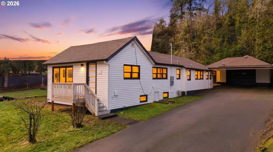 Recently remodeled home on a 0.52-acre lot in Milwaukie. Set back from the road and surrounded by trees, this property offers a secluded, park-like setting with everyday convenience. The interior has been fully remodeled and features a bright, open-concept layout that connects the living, dining, and kitchen spaces. Updates include new flooring, lighting, a modern kitchen with updated cabinetry, counters, and new stainless steel appliances, and a clean, modern finish throughout. Large windows provide excellent natural light and views of the surrounding greenery. The open concept floor plan is functional and luxurious, offering comfortable living spaces with flexibility for daily use, entertaining, or work-from-home needs. Outside, the expansive lot provides room for outdoor enjoyment, gardening, or future possibilities. An oversized garage, bonus room, and carport offer ample space for parking, storage, hobbies, or a workshop setup - an uncommon feature for properties in this area. Everyday shopping and services are easily accessible, with SE McLoughlin Blvd only 2.5 miles from the property, offering grocery options including Fred Meyer and Trader Joe's, along with restaurants, a cinema, and a variety of retail and big-box stores. Conveniently located just 1 mile from the North Clackamas Park complex, ball fields, and the North Clackamas off-leash dog park. This location provides an ideal balance of access to shopping, recreation, and services while maintaining a peaceful, nature-oriented setting. Move-in ready with thoughtful updates, generous land, and practical amenities, this home presents a strong opportunity for buyers seeking privacy, space, and modernized living on a substantial lot. Schedule a tour today to see for yourself.