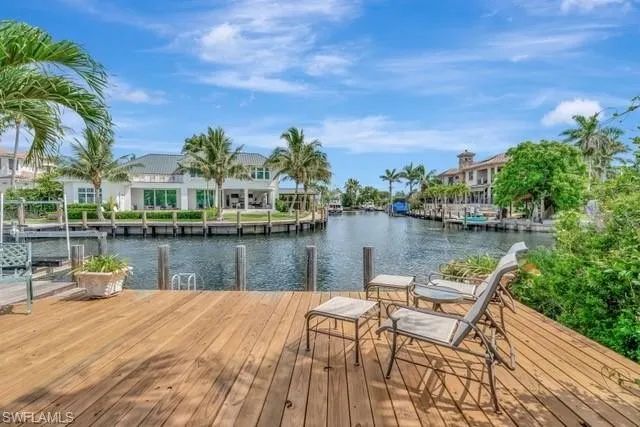 Being Sold at LOT VAlUE, this prime location is on the "T"of a canal and a 7 iron to Naples Bay! - Discover one of Naples' finest waterfront opportunities located in the prestigious community of Royal Harbor. This lot offers 80 feet of water frontage, with direct Gulf access and no bridges-ideal for boating enthusiasts and luxury home builders alike. A 12,000 lb boat lift is already in place, making this an immediate option for enjoying Naples Bay and the Gulf of Mexico. Whether you're ready to move in or want to build your dream estate, this property delivers flexibility and value. Single level living in this 2,450 sq/ft, 3 Bedroom 3 Bathroom residence is easy and has a spacious den for remote office or to be converted into any number of uses. The house is perfect for seasonal use, rental income, or a comfortable base while you design your custom build. Ideally located less than 200 yards from the bay the dock is at the "T" of another canal offering long water views in three directions from the pool and outdoor area. Situated just minutes from 5th Avenue, fine dining, beaches, and world-class marinas, this location offers the best of Naples living with no HOA restrictions. Royal Harbor makes up the Eastern shore of Naples Bay and is one of the friendliest and most convenient water front communities in South West Florida.
