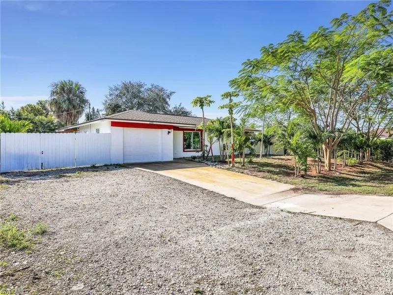 OVER SIZE CORNER LOT - FULLY FENCED Excellent location close to schools, shopping, and restaurants. This well-kept home sits on an oversized corner lot with a fully fenced yard, fruit trees, and a large storage shed. Multiple fence access points allow convenient parking for a boat, trailer, or other toys (verify with Collier County). Surrounded by well-kept homes on the south side of the Parkway. Features include NEW roof, NEW HVAC, impact windows and doors, new garage door and opener (1/19/2023), new well equipment, new exterior door paint, new white electrical switches/outlets, and plank tile flooring throughout. Fresh paint on the garage floor enhances the clean look. The garage has been converted into an additional room, providing extra living space, but it can easily be converted back to a garage if desired. Bright interior with plenty of natural light. The primary bedroom offers a ...