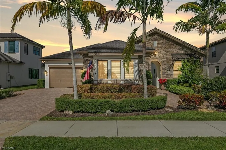 Breathtaking long lake views set the stage for this beautifully upgraded ''Built by Standard Pacific Homes'' 3-bedroom + den residence with 3 full baths and 1 half bath, located in the highly sought-after Bent Creek Preserve. Positioned to capture one of the longest and most peaceful water views in the community, this home offers a refined blend of elegance, comfort, and thoughtful upgrades throughout. From the moment you arrive, you'll appreciate the meticulously landscaped grounds, stone-accented exterior, and inviting front entry courtyard that welcome you into a light-filled foyer and spacious open floor plan designed to showcase the stunning lake backdrop. The home features numerous upgrades, including impact-resistant windows and doors, a recently painted exterior, new LG appliances, and a whole-home pure water system. The primary suite has been enhanced with custom closet systems and added wood flooring in both the bedroom and closet, while upgraded porcelain tile flows through the main living areas. A 13,000-watt generator pre-wire adds peace of mind. The chef's kitchen is both stylish and functional, offering a large center island, walk-in pantry, crown-molded cabinetry, granite countertops, and a glass tile backsplash, complemented by new interior lighting in the kitchen and dining area. The living space is anchored by a custom built-in fireplace with designer glass doors and sconces, creating a warm yet sophisticated focal point. Step outside to the spacious lanai, where tranquil long lake views provide the perfect setting for relaxation or entertaining. Plantation shutters in the bedrooms add timeless charm and privacy. Bent Creek Preserve offers exceptional resort-style amenities, including a clubhouse with pool and spa, fitness center, billiards room, and bocce courts, with new tennis courts and pickleball coming soon. Residents also enjoy direct community access to Founders Square, featuring popular shopping and dining just steps away.