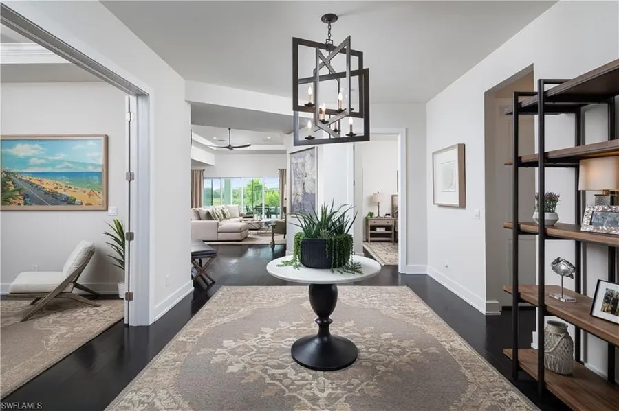 THIS IS THE ONE! Looking for a pool home that's furnished and finished to fulfill your dream of the perfect Naples home? This impressive yet comfortable home will check all the boxes. Enter the grand foyer, then discover the expansive great room, furnished to perfection, with the sparkling pool and lake view beyond. The gourmet kitchen with large island flows to the formal dining area. This thoughtful layout is perfect for every day living and entertaining inside and out. The primary suite is a welcoming, sunny retreat with luxurious bathroom, complete with double vanities and stand-alone tub. Guest rooms and the den/office with adjacent half bath are strategically placed for privacy. Practical features include all impact windows and doors; upscale furnishings, window treatments and lighting throughout; plus oversized garage. The owner's creative flair is displayed in every room with spe...