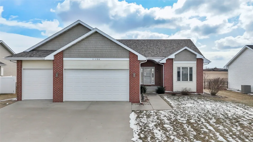 Welcome to 1156 Cherokee Street, a beautifully maintained home nestled in the highly desirable Indian Ridge subdivision in Nevada. From the moment you step inside, you are greeted by an open and airy floor plan filled with an abundance of natural light. The spacious living and dining areas flow seamlessly together, creating an ideal setting for both relaxing and entertaining. A gas fireplace serves as a warm and inviting focal point, adding comfort to the heart of the home. The sleek, functional kitchen features black appliances, ample cabinetry, and generous counter space, making it well suited for daily use and gatherings alike. Just off the dining area, sliding glass doors lead to an updated composite deck that overlooks the backyard and open Iowa fields beyond. The primary suite provides a private retreat, complete with a jetted soaking tub, walk in shower, and a spacious walk in closet. Two additional bedrooms are conveniently located on the main level, thoughtfully positioned on either side of the full bathroom to provide comfort and privacy. Main floor laundry adds to the ease and functionality of everyday living. The unfinished lower level offers exceptional opportunity for future growth. With a large, open layout and clean, well planned design, this space is ideal for adding additional bedrooms, a bathroom, a family or recreation room, home office, or fitness area. Completing the home is a three car garage, offering plenty of room for vehicles, storage, and hobbies.