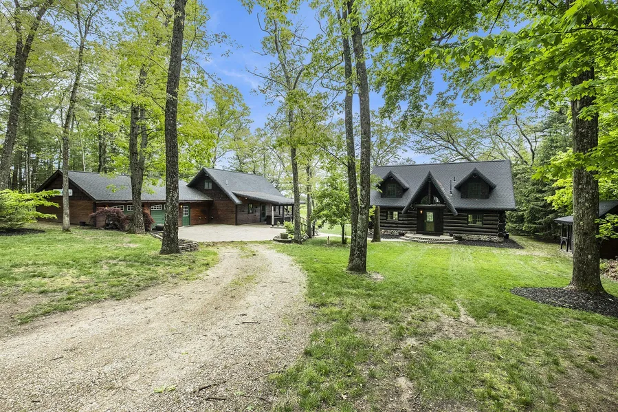 Welcome to Rivers Edge, a truly unique multi-home property on the Muskegon River! This one-of-a-kind retreat includes a handcrafted main log home and a charming tongue-and-groove guest home with an attached garage-all overlooking some of the most breathtaking views in Newaygo County. The main log home showcases rustic character throughout and features: 2 bedrooms, 2 bathrooms, spacious kitchen designed for entertaining, built-ins, fieldstone fireplace, and laundry room. The guest home offers even more space with: 2 bedrooms, 1 full bathroom, laundry room, 2-car garage, and loft space with potential for future finishing. Additional highlights include a garden shed, a rustic storage garage, and newly built stairs (2024) leading down the bluff to a clean and clear swimming hole on the Muskegon River. Rivers Edge provides unmatched privacy, situated at the end of a year-round, unpaved two-track that serves only about five homes. Both residences have newer roofs and HVAC systems.